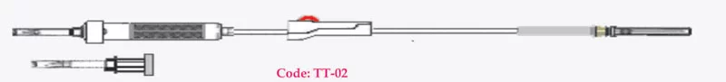 Scharfer Dorn, belüftet (für Flaschen und Beutel) und nicht belüftet (für Plastikflaschen) für besseres Eindringen. ISO 8536-4-konformer Dorn, ISO 594/1- und ISO 594/2-konformer Endanschluss.